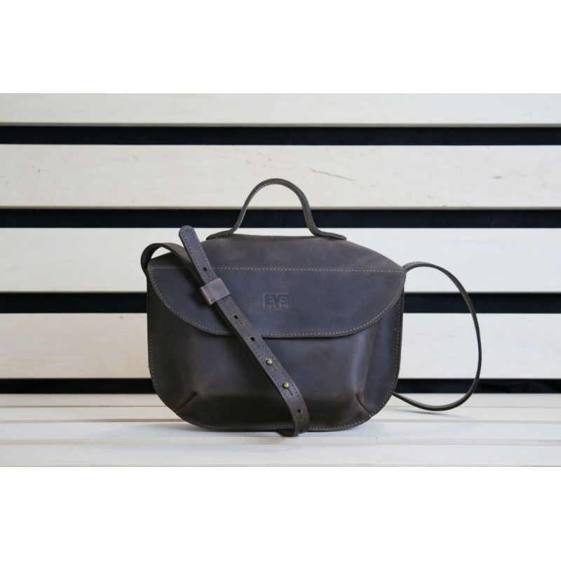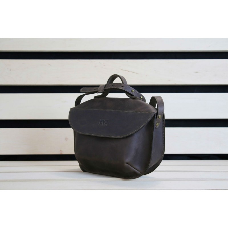 - Женская кожаная сумка "Сфера" коричневая ручной работы выполнена из винтажной натуральной кожи Крейзи Хорс.