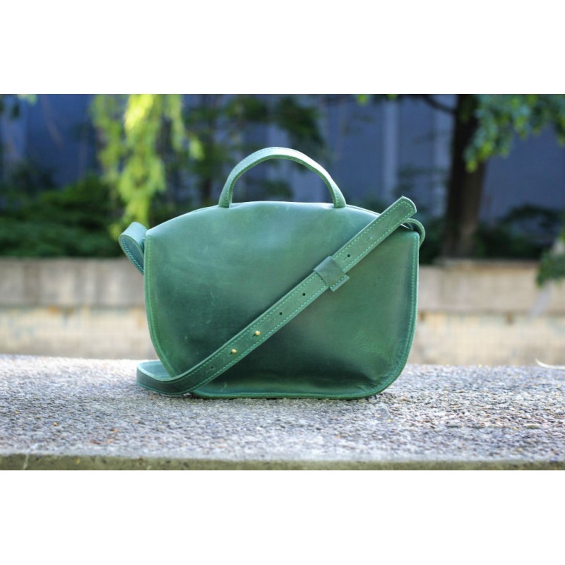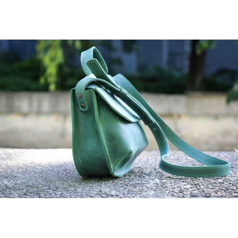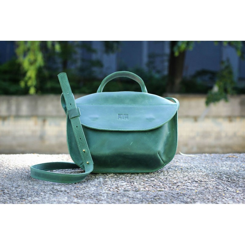 - Женская кожаная сумка "Сфера" зеленая изготовлена из натуральной кожи Crazy Horse.