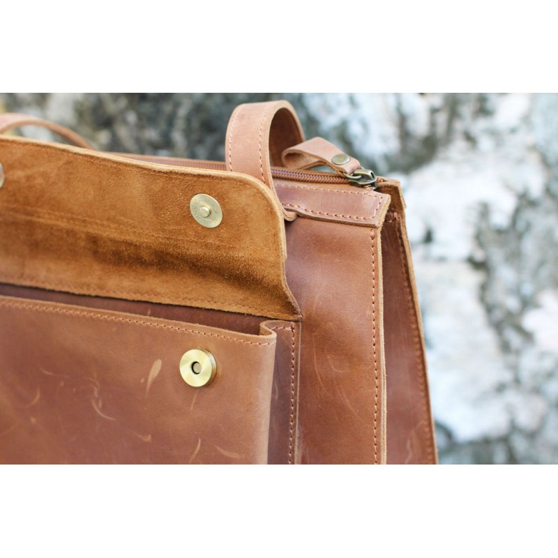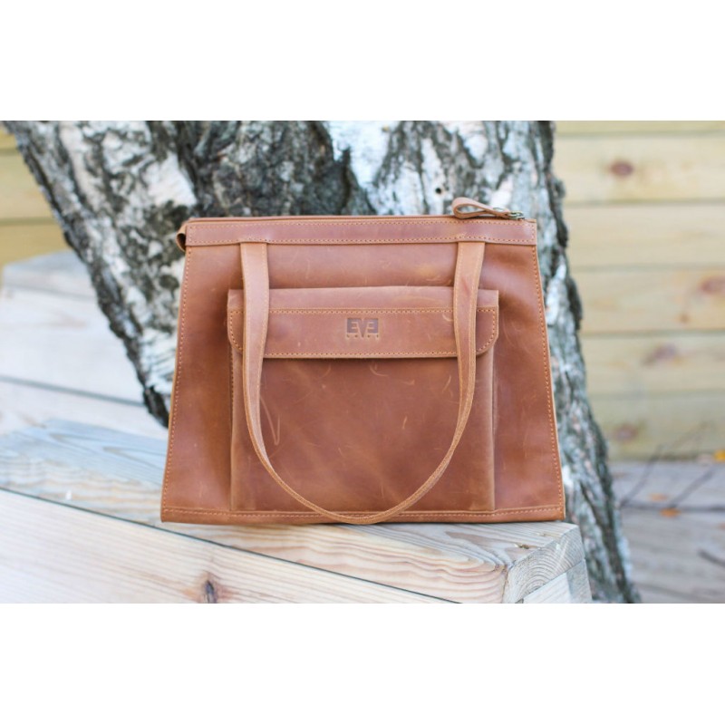 - Женская кожаная сумка "Ушки" темно-рыжая из гладкой натуральной кожи.