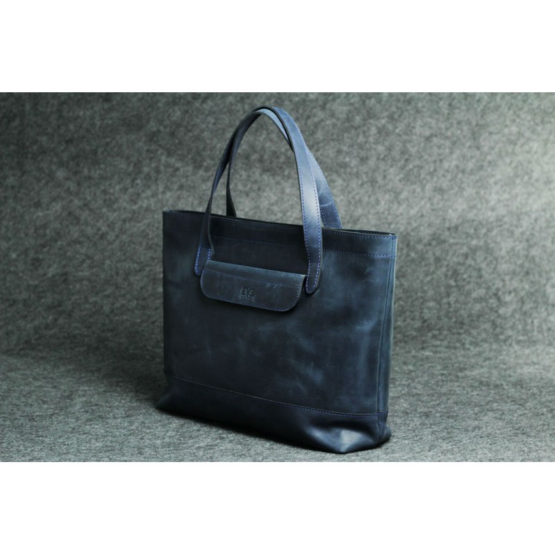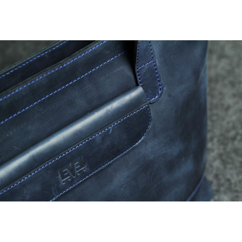 - Женская кожаная сумка "Же - горизонтал" синяя ручной работы из натуральной кожи Крейзи Хорс.