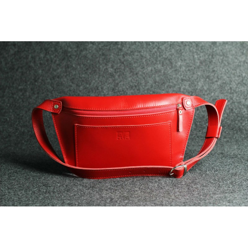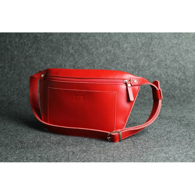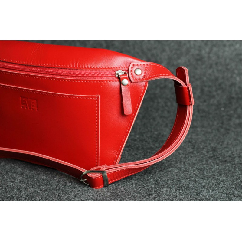 - Кожаная поясная сумка "Лодочка" красная кайзер бананка из гладкой кожи Kaiser.