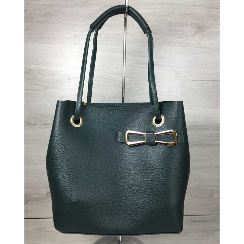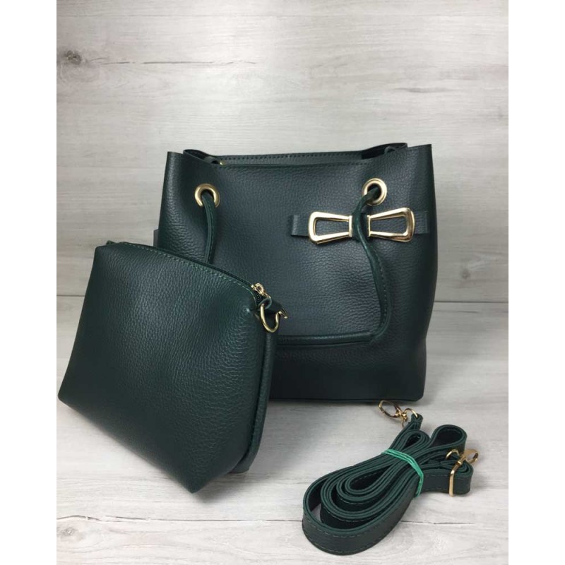 - 2в1 Молодежная женская сумка Welassie Бантик зеленого цвета 55008 изготовлена из качественной экокожи с текстурой флотар.