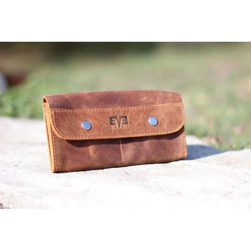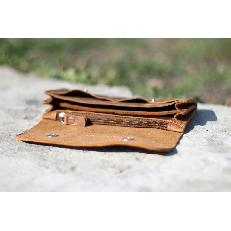 - Кожаный кошелек "Двойной" темно-рыжий изготовлен из натуральной винтажной кожи Крейзи Хорс.