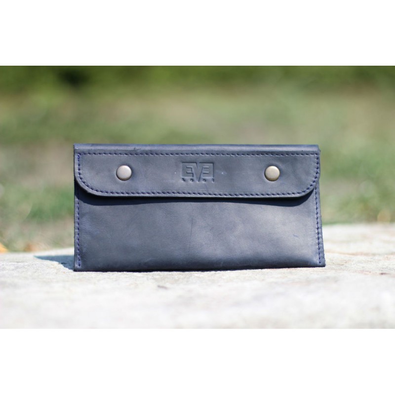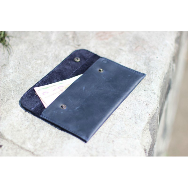 - Кожаный кошелек "Конверт" синий изготовлен из натуральной кожи Crazy Horse.