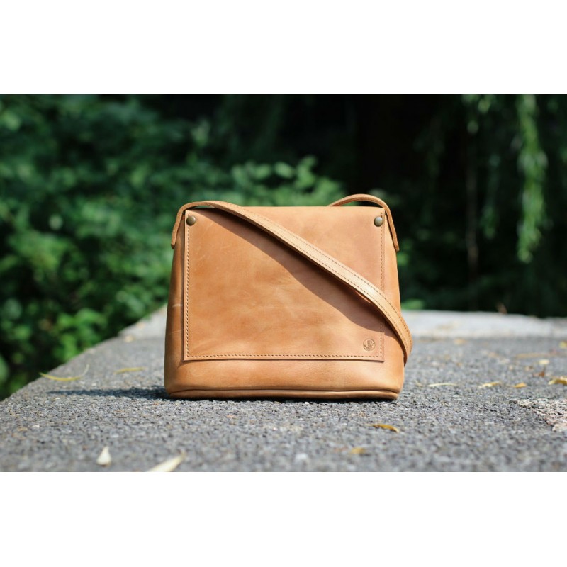 - Небольшая женская кожаная сумка "Капля" светло-рыжая из натуральной кожи Крейзи Хорс.