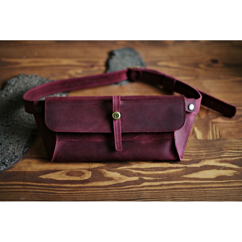 - Кожаная поясная сумка "Стандарт" бордовая для ношения на поясе и через плечо.