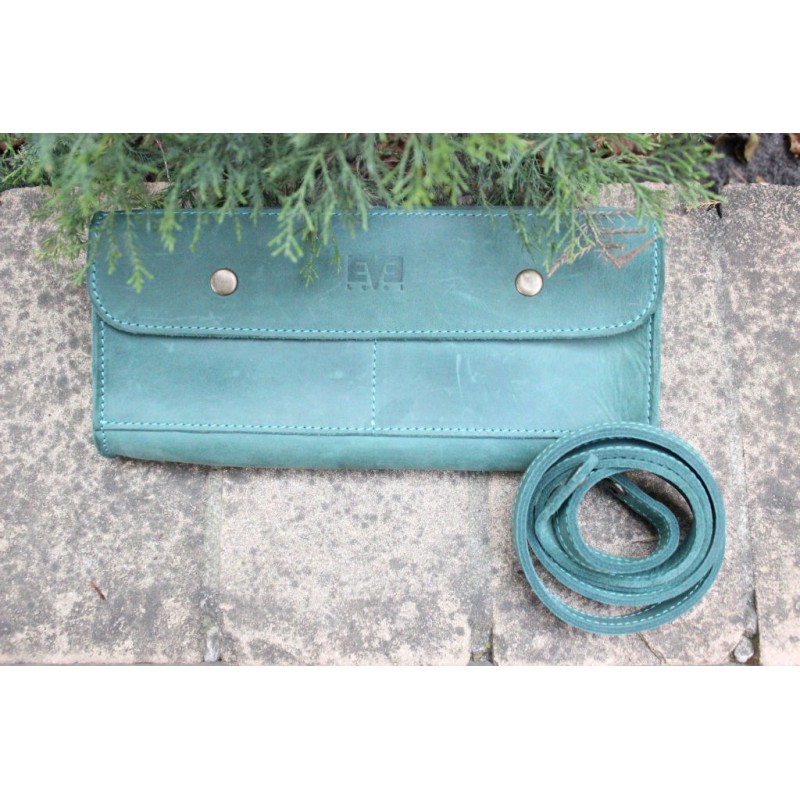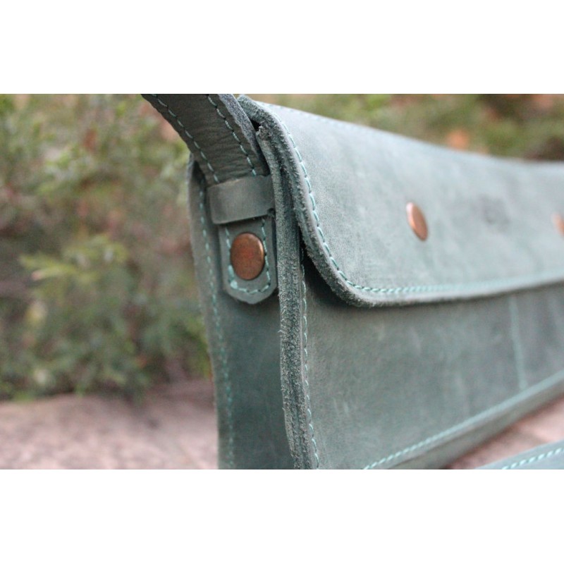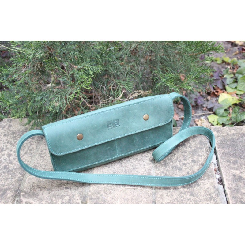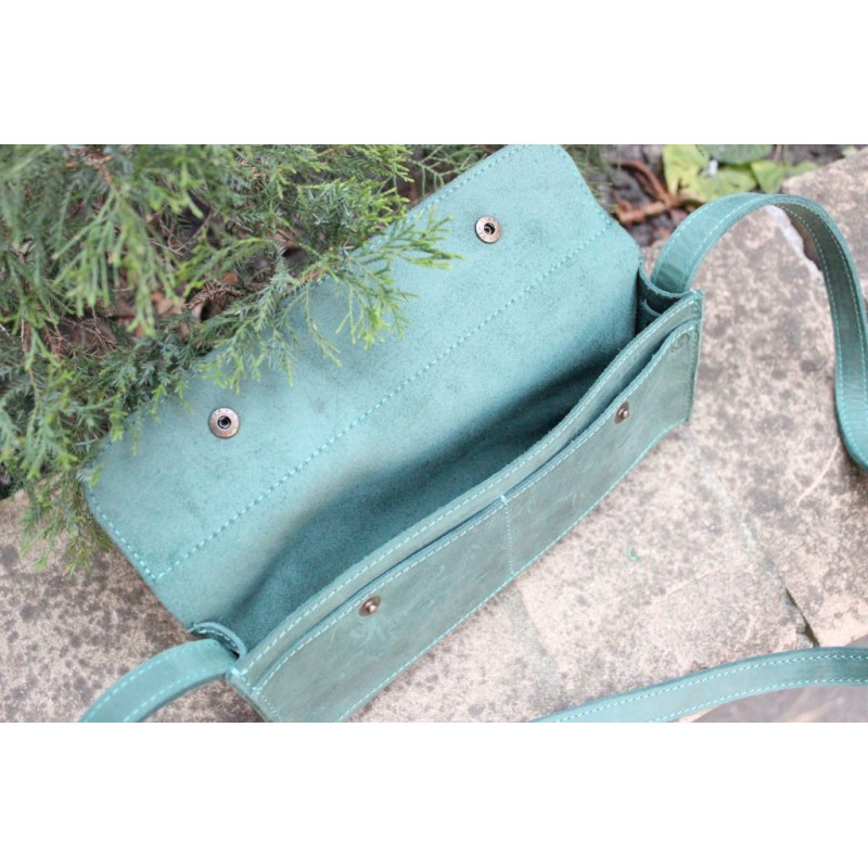 - Женская кожаная минисумка "Стандарт" зеленая через плечо выполнена из кожи Crazy Horse.