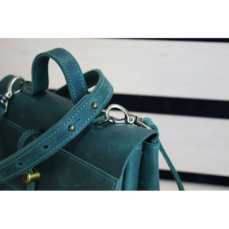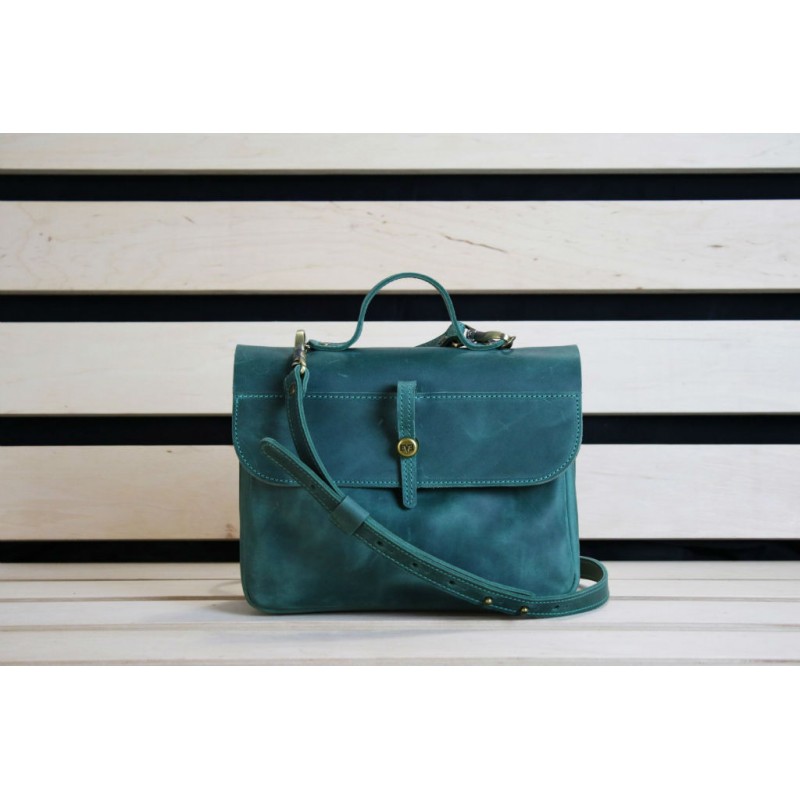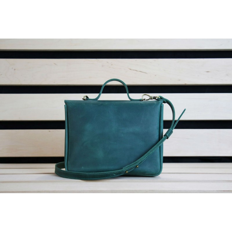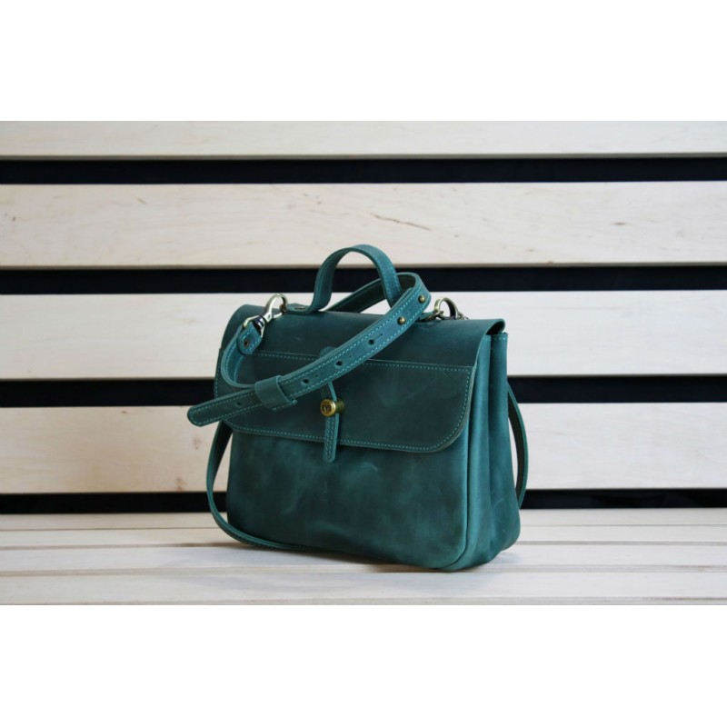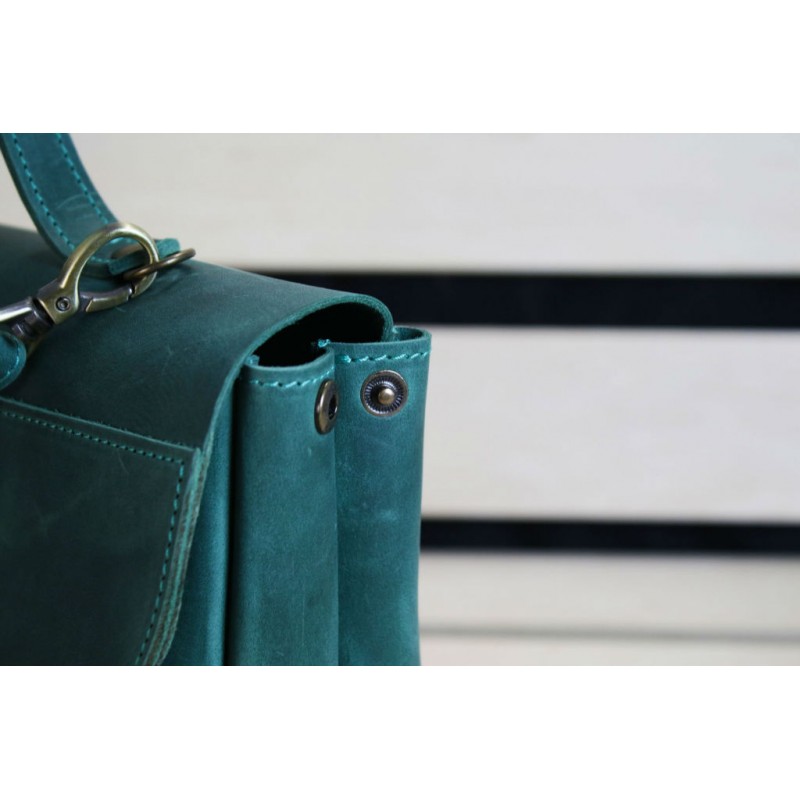 - Женская кожаная сумка "Лира" зеленая ручной работы из натуральной винтажной кожи.