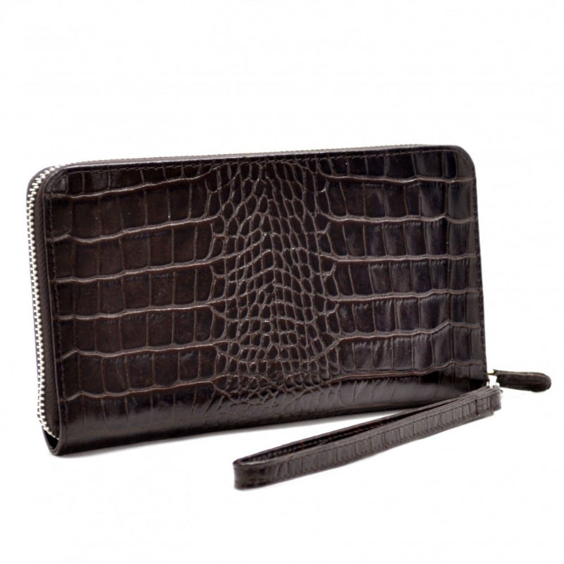 Барсетка кожаная мягкая CANPEL 750-11 коричневый кроко красивая и практичная.