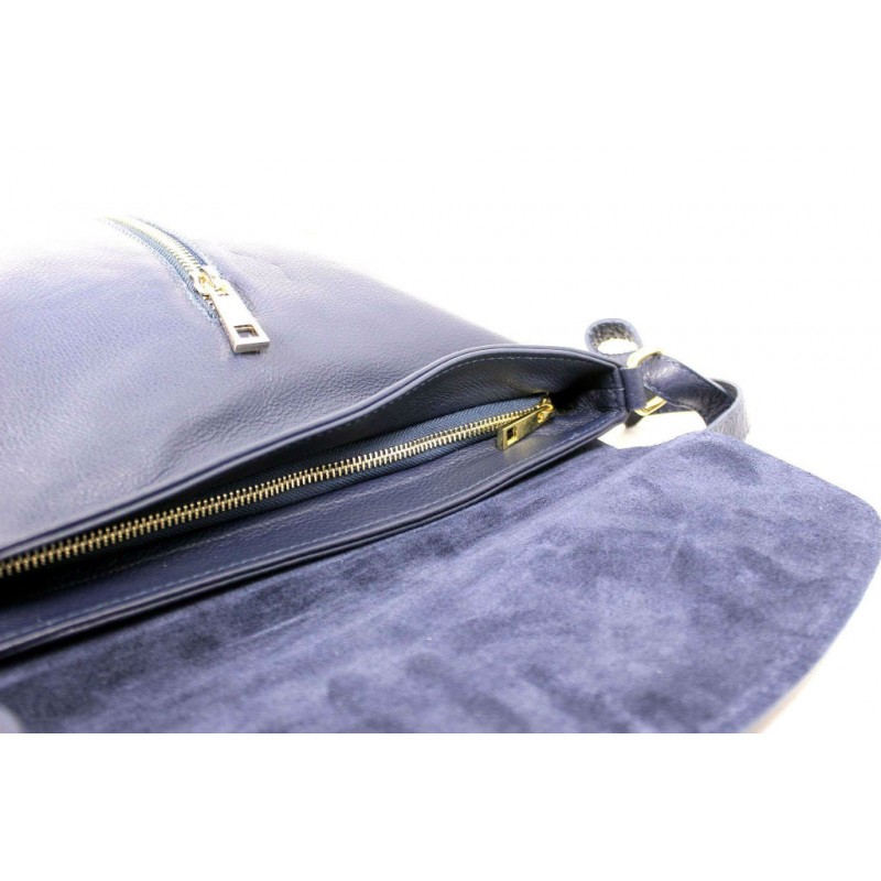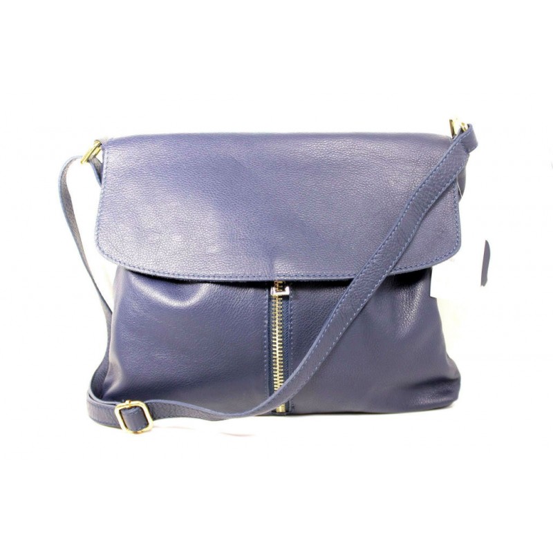 - Женская итальянская кожаная сумка Тоут BIZ0-008 синяя через плечо.