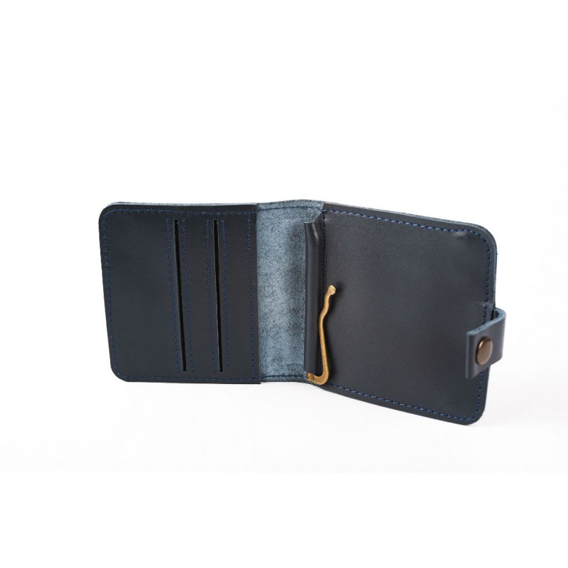 - Практичный мужской кожаный кошелек-бумажник CLIP NAVY BLUE синий.