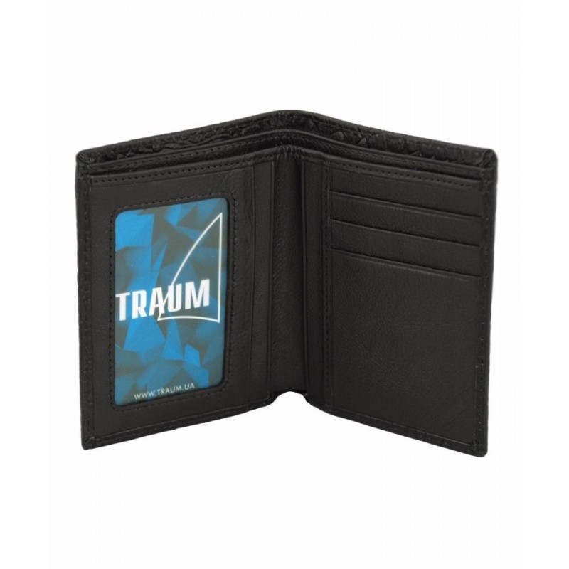 - Мужской кошелек - бумажник TRAUM 7110-40 черный из натуральной кожи с тиснением под кожу крокодила.
