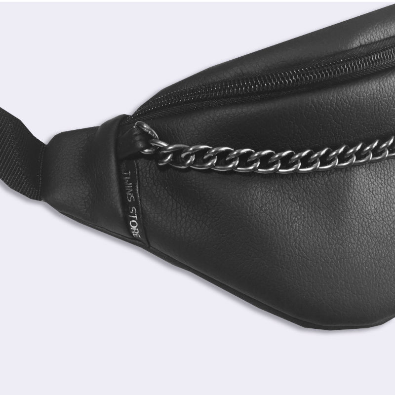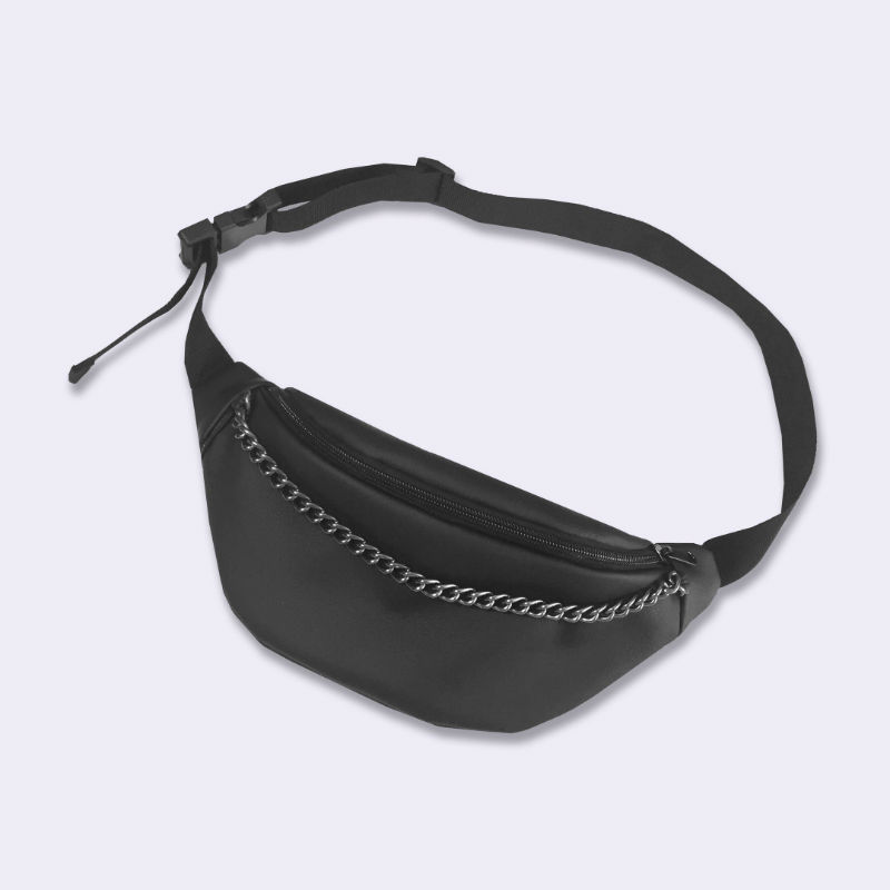 - Женская черная кожаная бананка с цепочкой (Б59).
