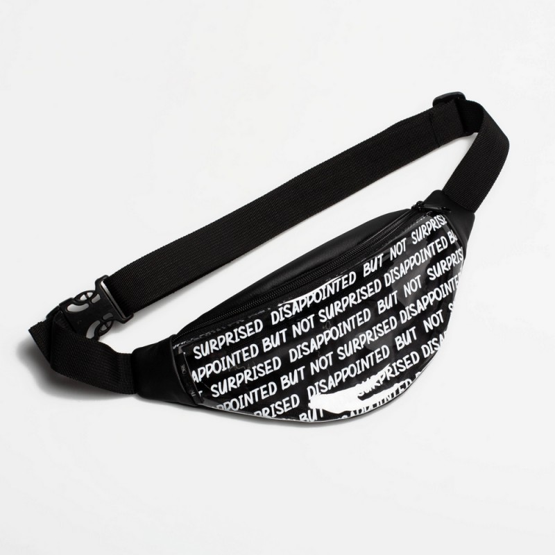 Черная прозрачная бананка Disappointed but not surprised TWINSSTORE Б217 с надписью спереди на английском -"Разочарован, но не удивлен".