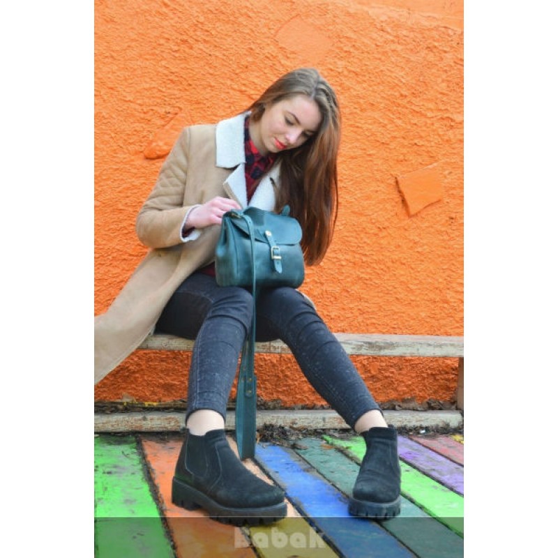 - Женская кожаная сумка Burbua 859077 тёмно-зелёная выполнена из натуральной кожи "crazy horse".