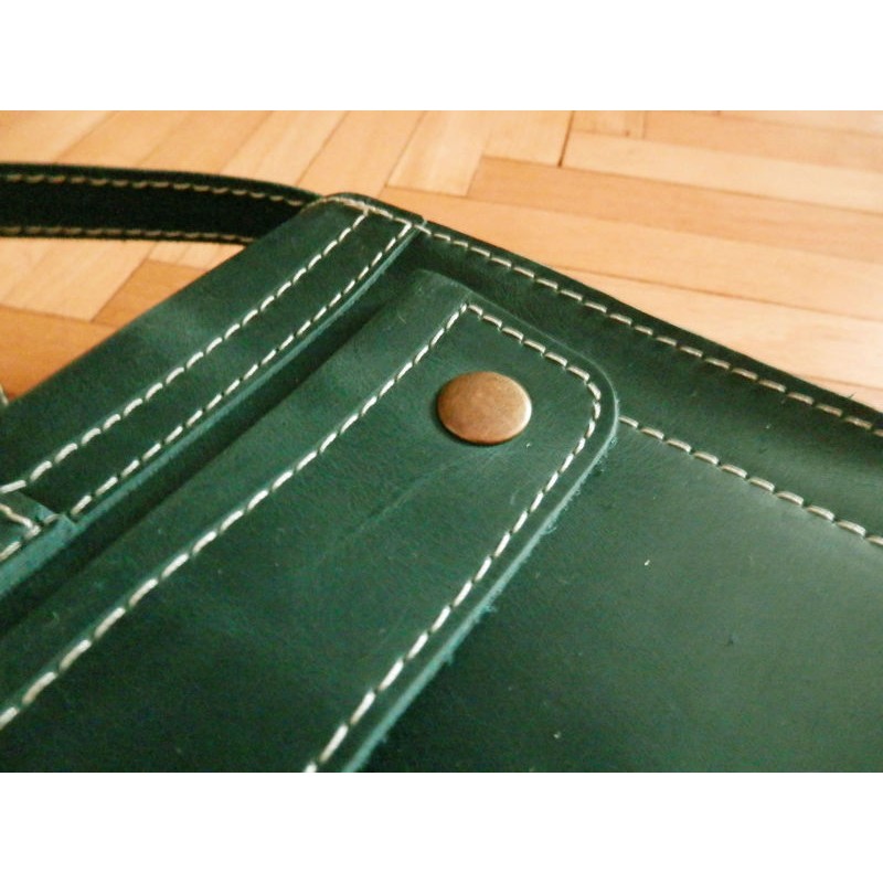 - На тыльной стороне сумке курман закрывающийся на кнопки.