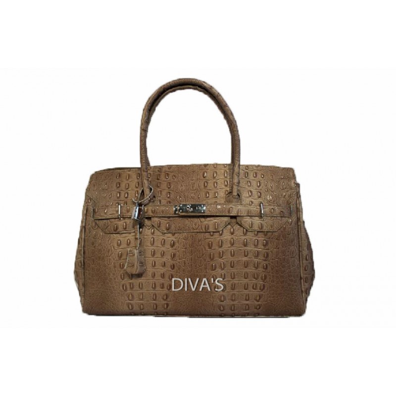 - Женская кожаная сумка GLORIA (M8824) серо-коричневая из высококачественной натуральной кожи с крокодиловым тиснением.