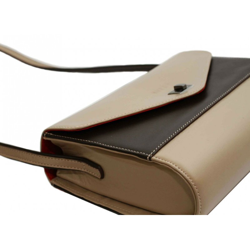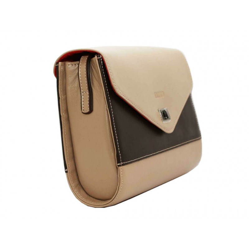 Женская кожаная сумка VATTO Wk4 N1Kaz400 бежевая выполнена из плотной натуральной кожи бежевого цвета и дополнена шоколадными вставками.