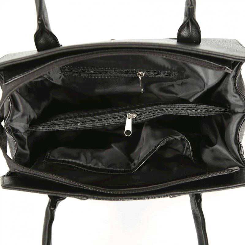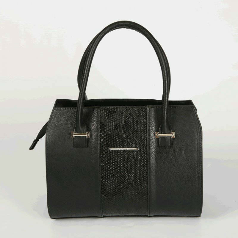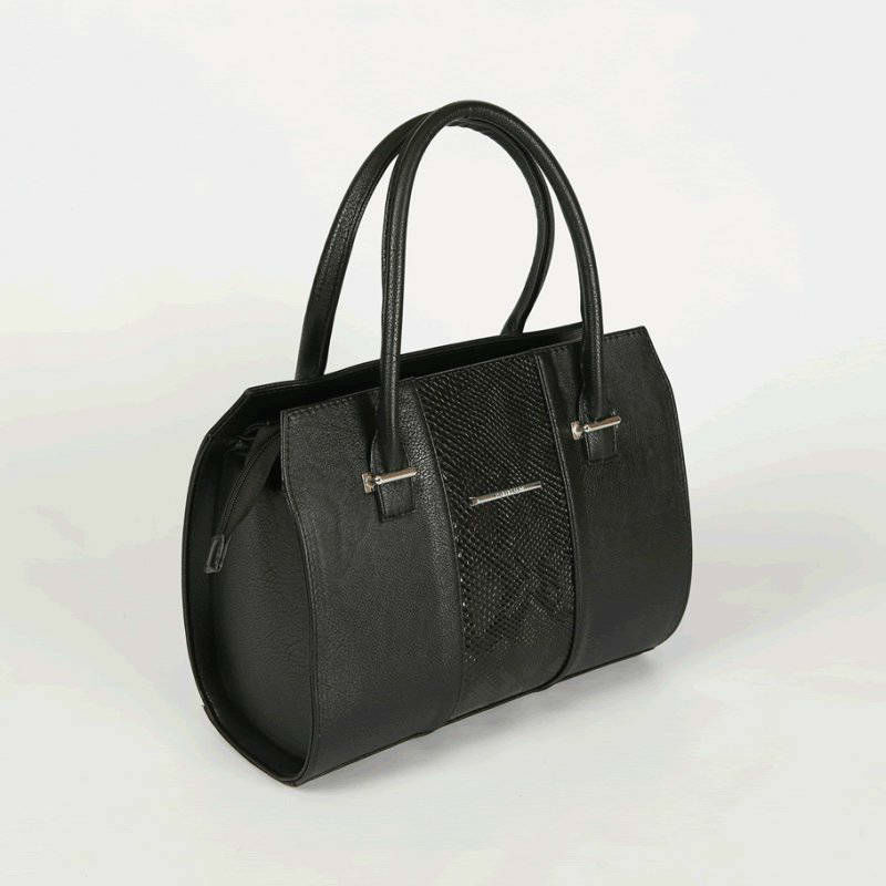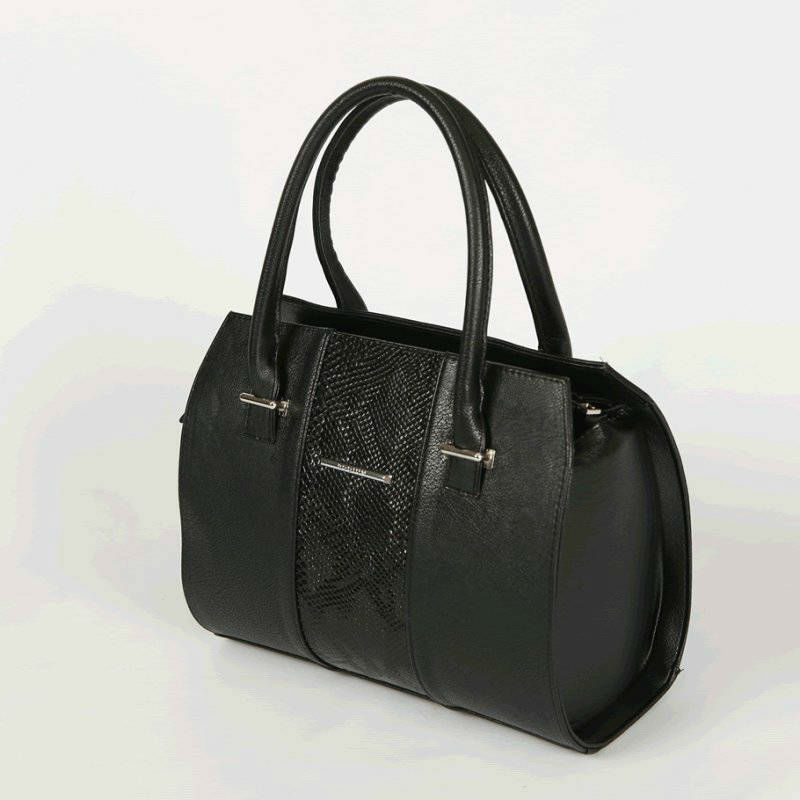 - Женская комбинированная сумка М62-47/14 черная изготовлен из кожи PU флотар с вставками под змею.
