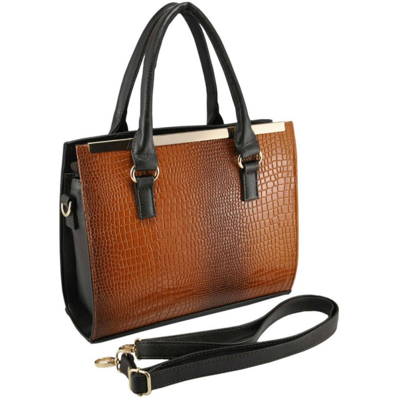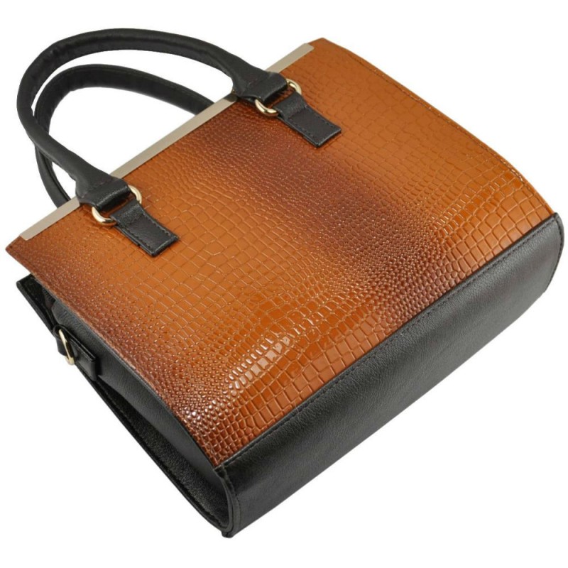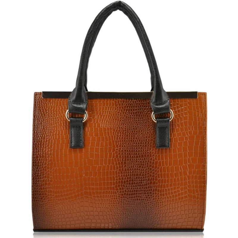 - Классическая женская сумка 35247 рыжая с крокодиловым тиснением спереди.