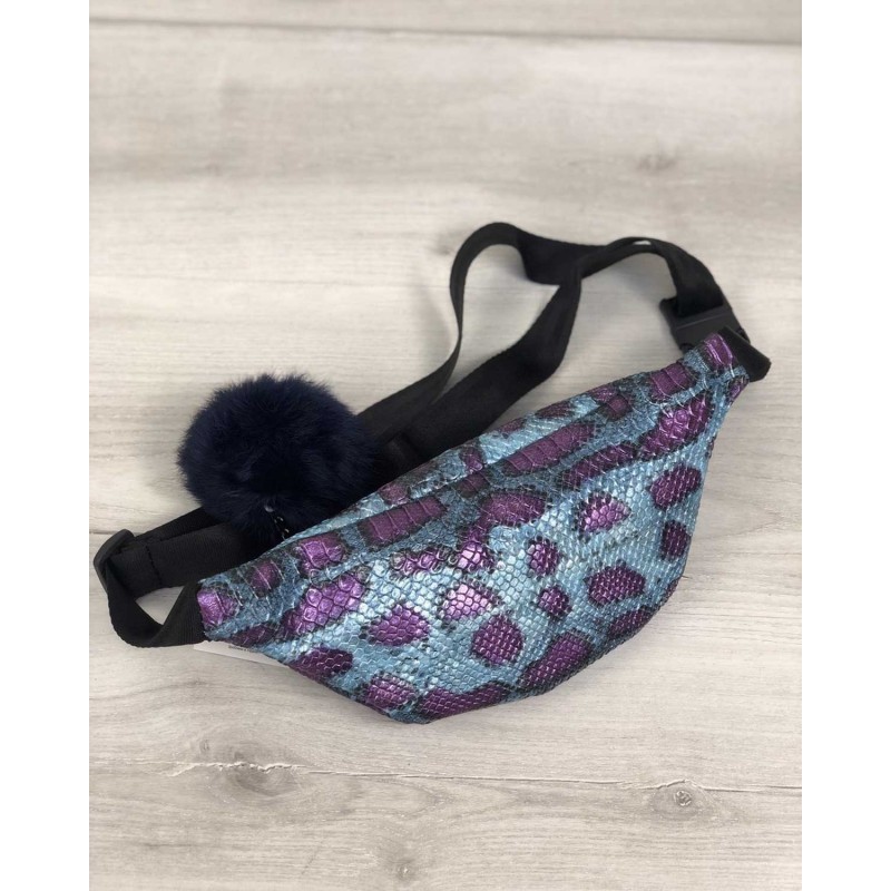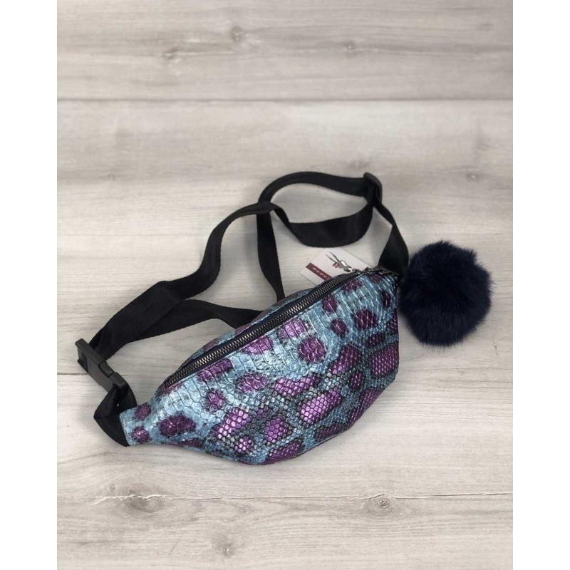 Женская сумка Бананка с пушком голубой с сиреневым змея (никель) Welassie 60803