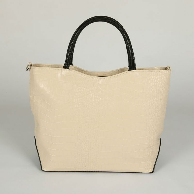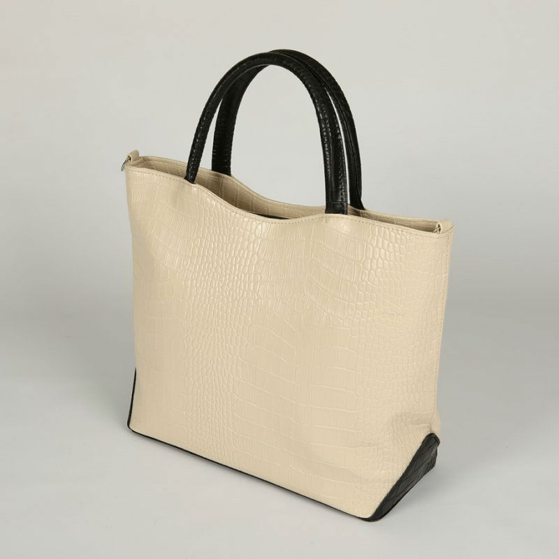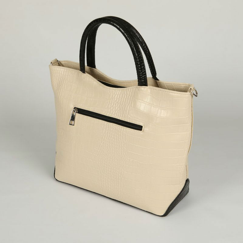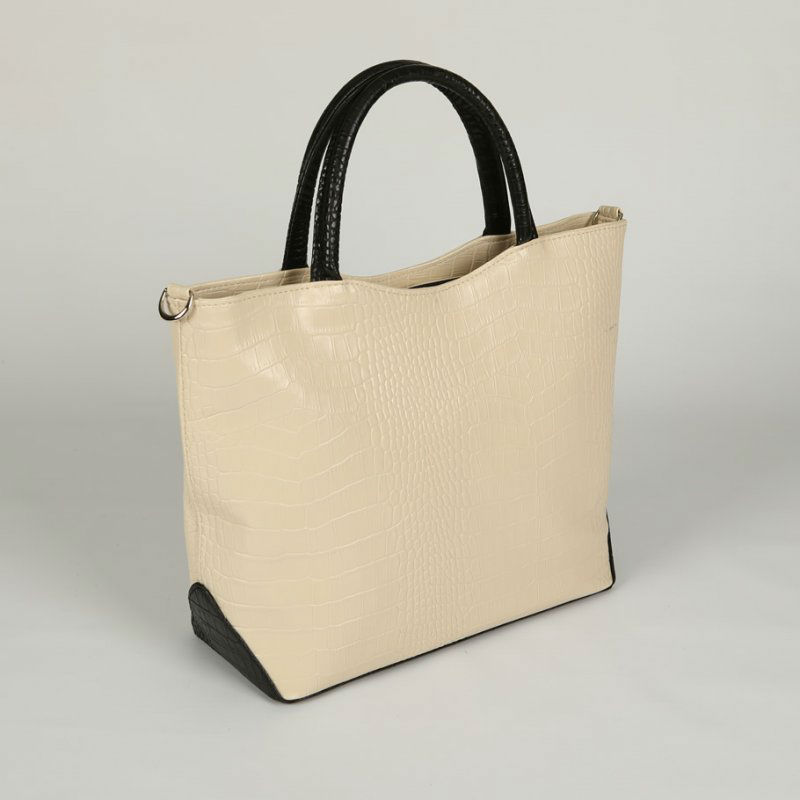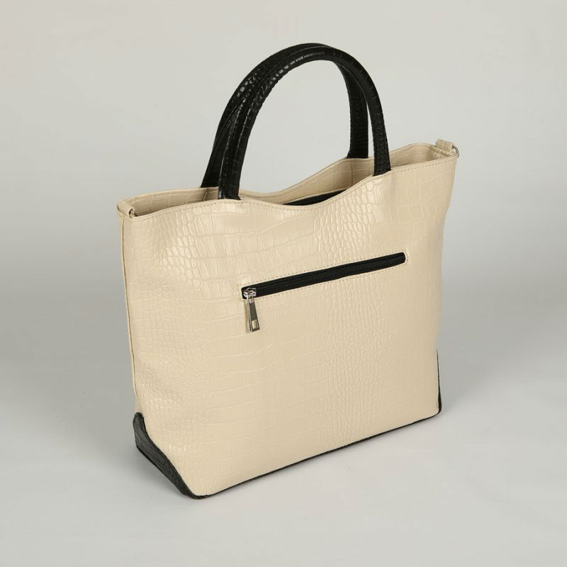 - Женская сумка из кожзаменителя М75-12/10 бежевая с черными вставками.
