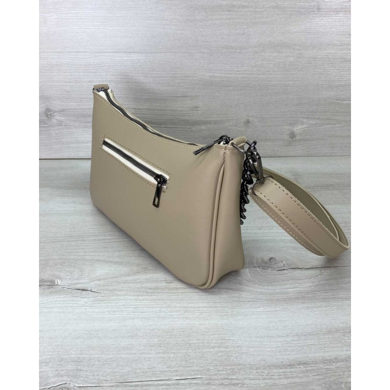 Женская сумка «Луна» бежевая Welassie 62229 из эко-кожи высокого качества (материал похож на кожу).