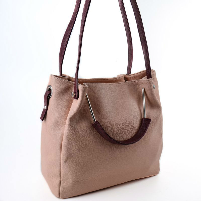 - Женская сумка М131-65/38 розовая с бежевыми ручками.