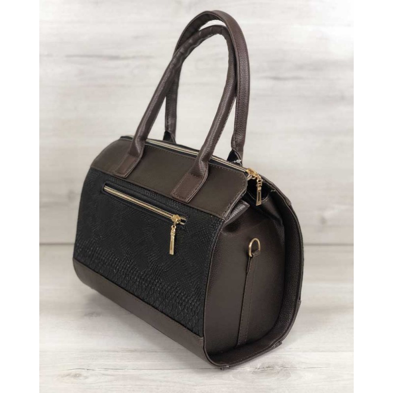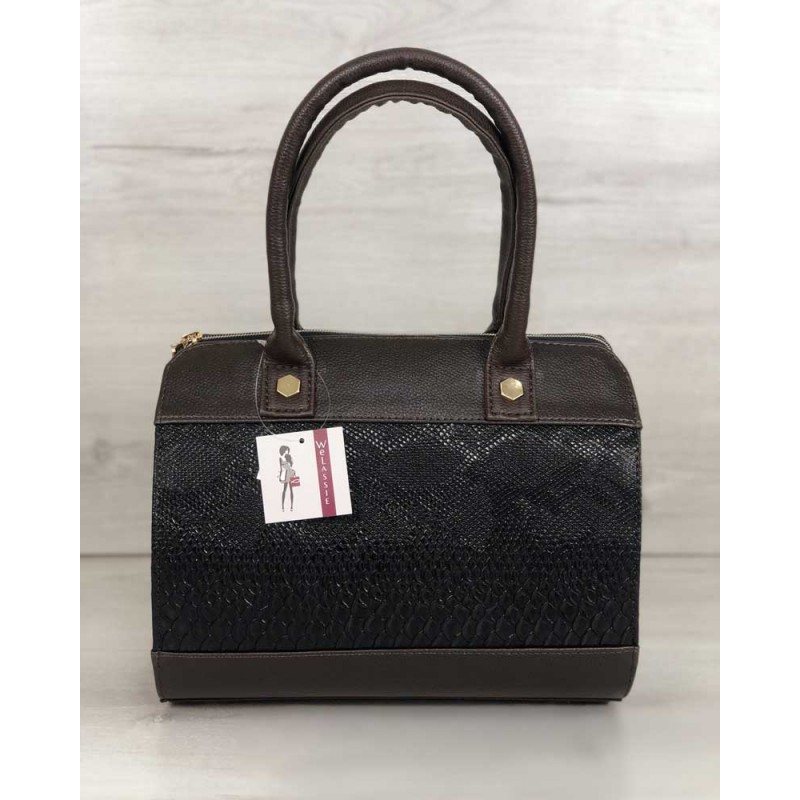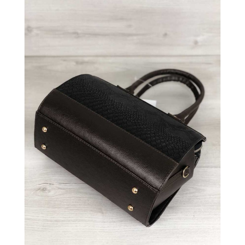 - Каркасная женская сумка Welassie Маленький Саквояж коричневого цвета со вставкой коричневая рептилия 32007.