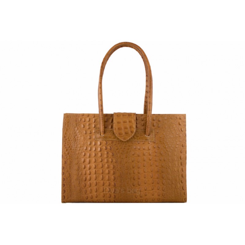 - Женская сумка Manuela (S6851) коньяк из натуральной кожи с крокодиловым тиснением.