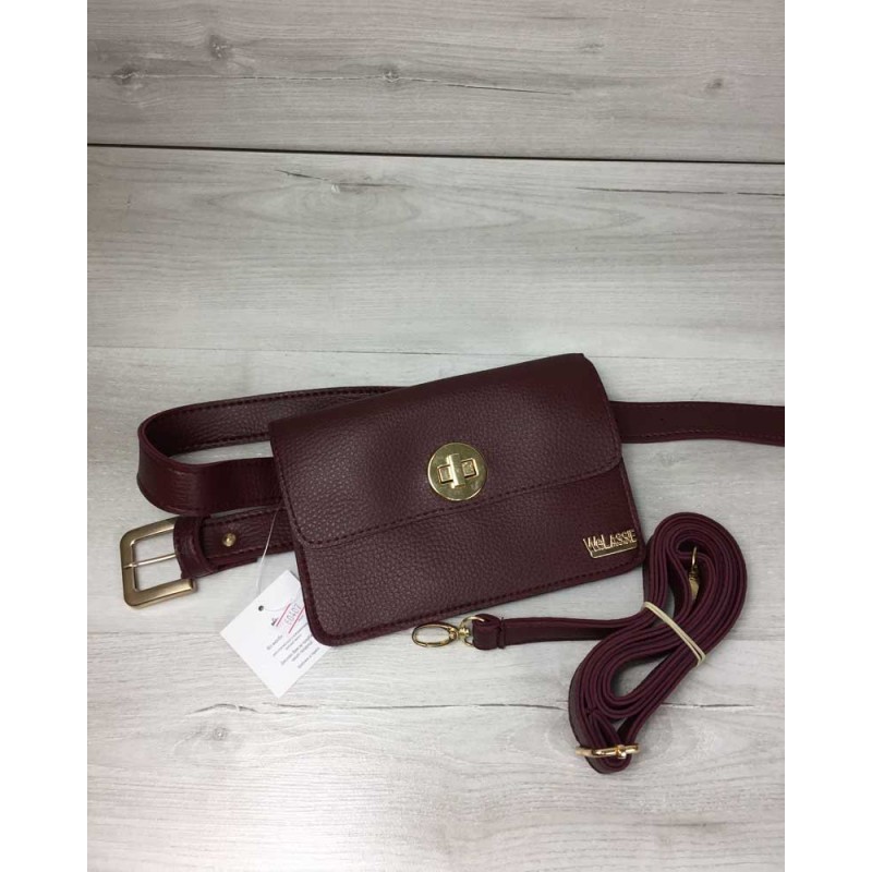 - Удобная женская сумка на пояс-клатч Welassie Арья бордового цвета 60407.