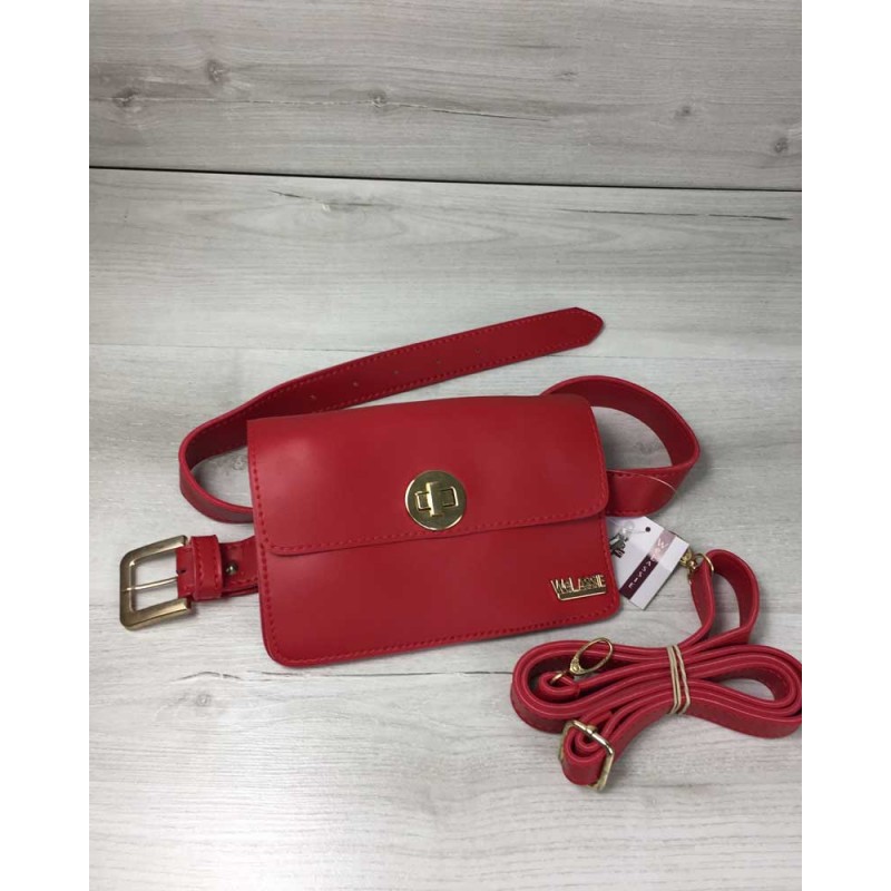- Стильная женская сумка на пояс-клатч Welassie Арья красного цвета 60402.