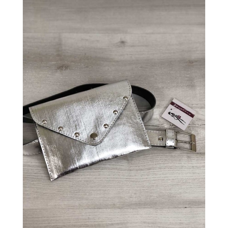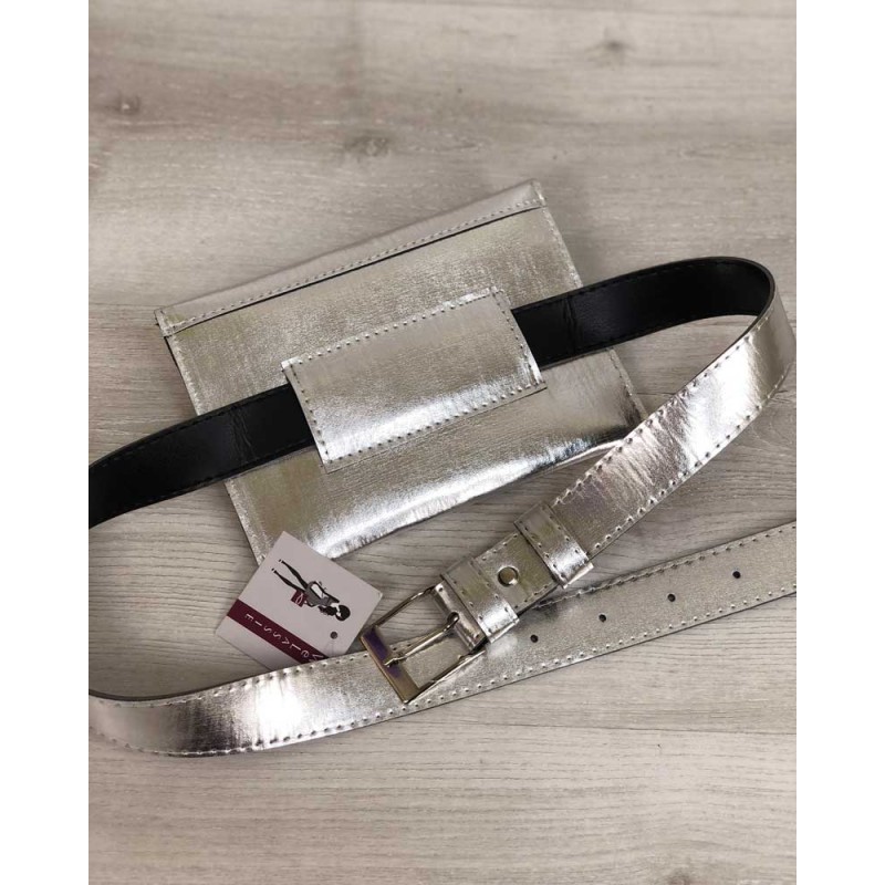 - Изысканная женская сумка на пояс Welassie серебряного цвета 99101.