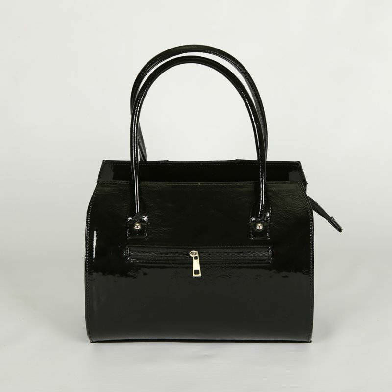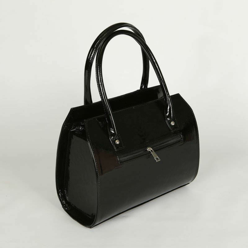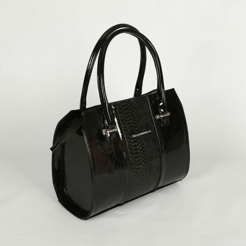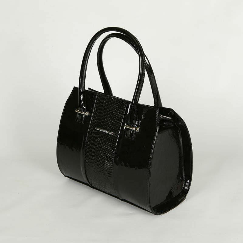 - Женская сумка со вставкой из питона М62-лак/14/Z черная из лакированой экокожи.