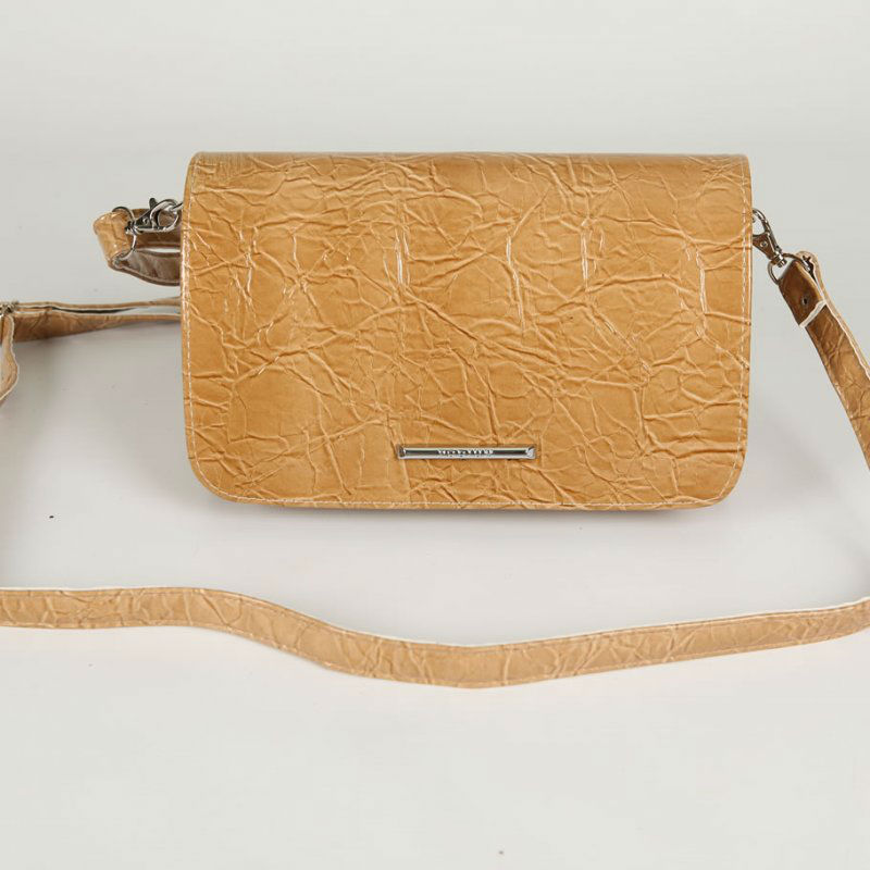 - Женская сумочка-клатч М63-208-3/3 бежевая изготовлена из экокожи с текстурой мятой бумаги.