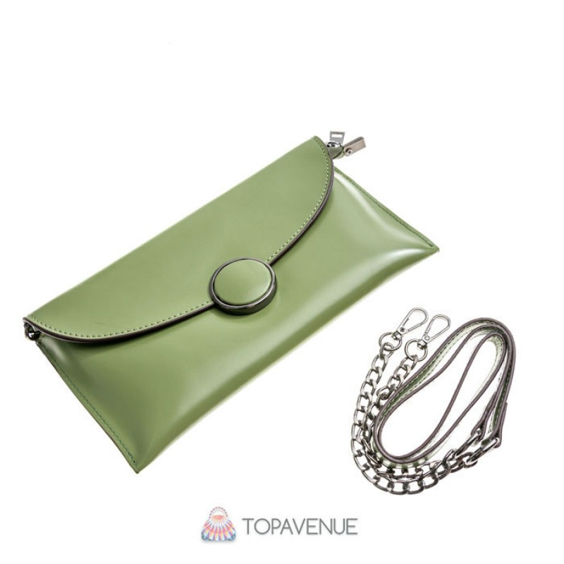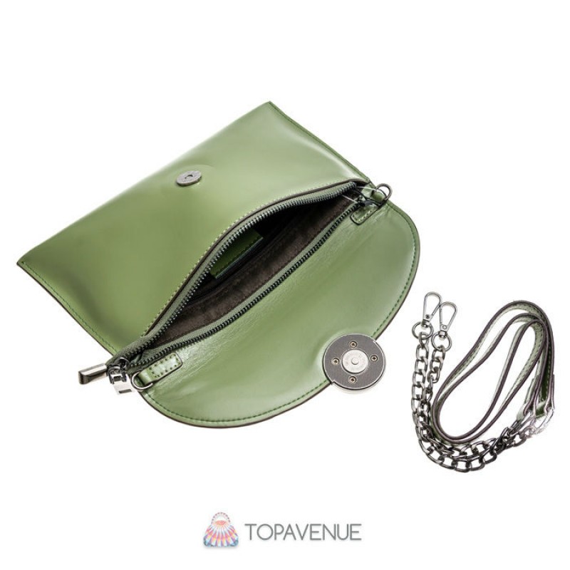 - Итальянский кожаный женский клатч-конверт AMO ACCESSORI AMO8021green зеленый.