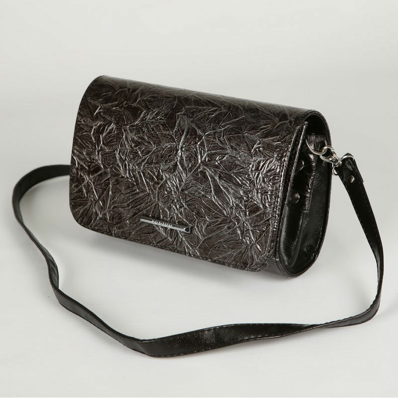 - Красивый женский клатч через плечо М63-212-4/Z серый с имитацией мятой бумаги.