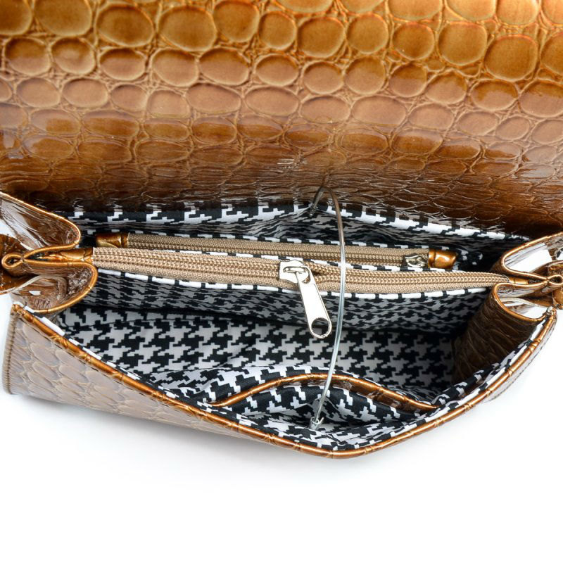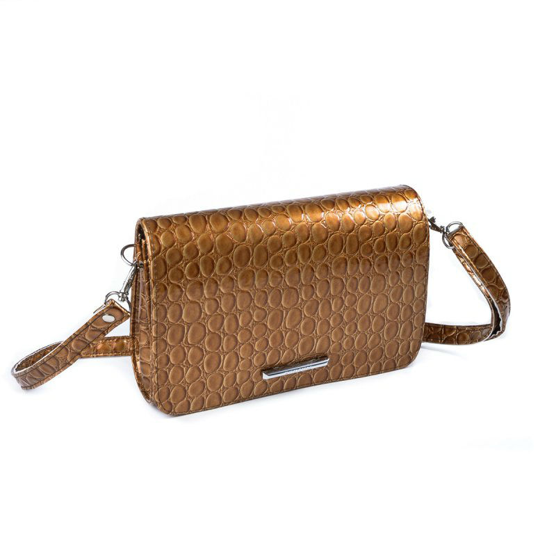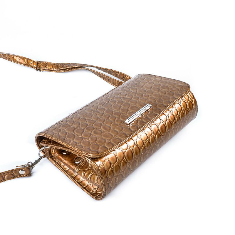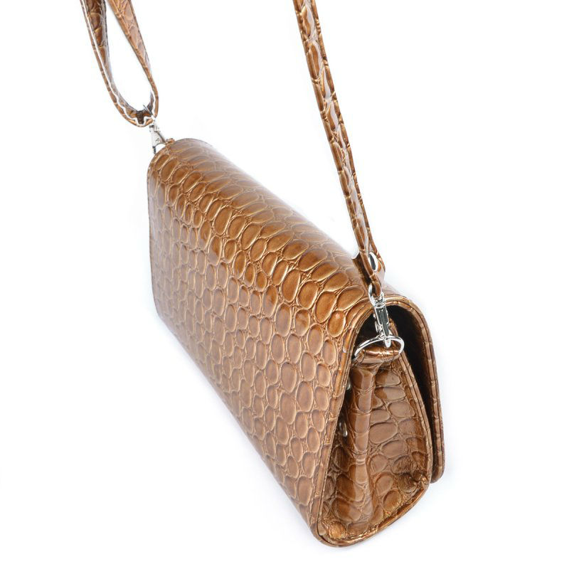 - Красивый женский клатч через плечо М63-229-7 бежевый с тиснением.