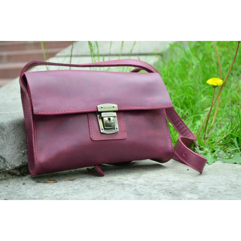 - Женский кожаный клатч 870066 виноградный выполнена из натуральной кожи "crazy horse" с эффектом состаривания.