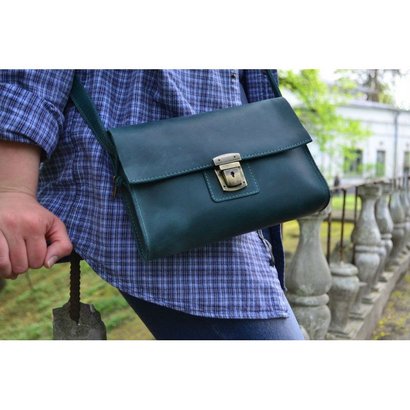 - Женский клатч 870077 зеленый из гладкой натуральной кожи "crazy horse" с эффектом состаривания.