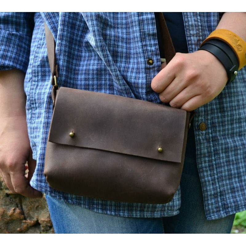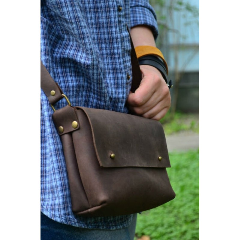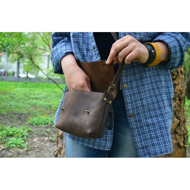 - Женский клатч 877051 коричневого цвета через плечо выполнен из натуральной кожи "crazy horse" с эффектом состаривания.