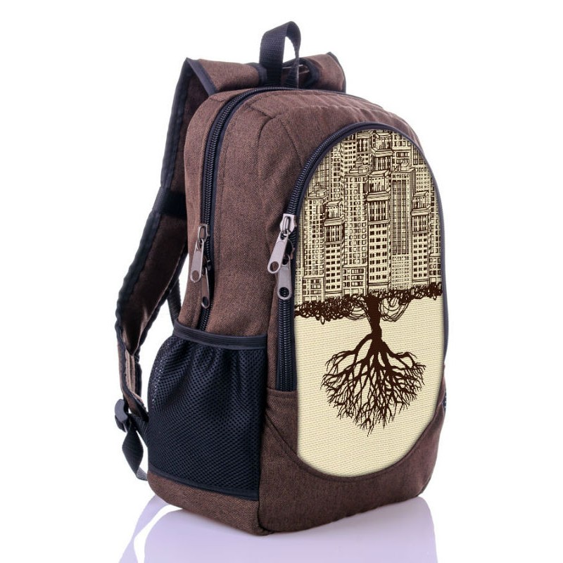 - Городской рюкзак XYZ New Design РГ18604 Город коричневый с принтом на лицевой стороне.