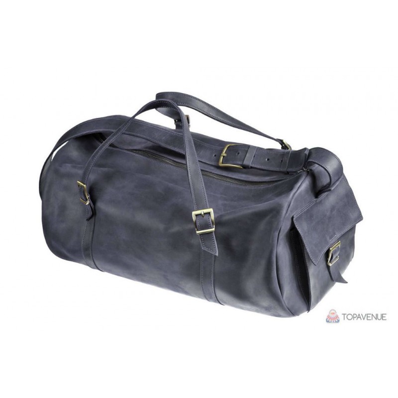 - Сумка дорожная 760170 синяя из толстой высококачественной итальянской кожи.