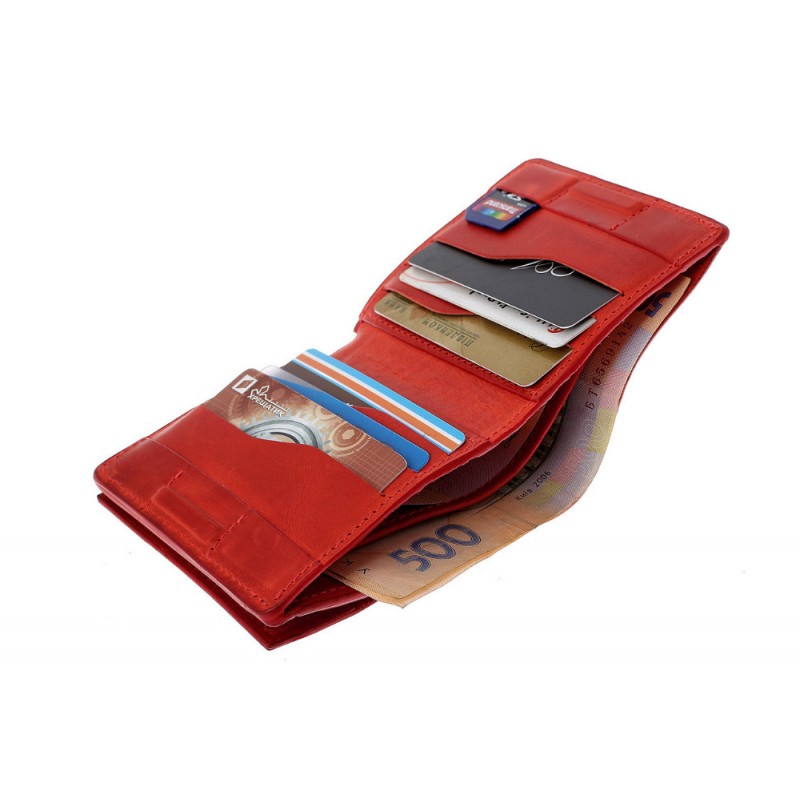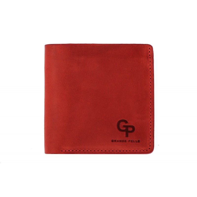 - Удобное кожаное портмоне Grande Pelle Lettera 537160 с монетницей красное.
