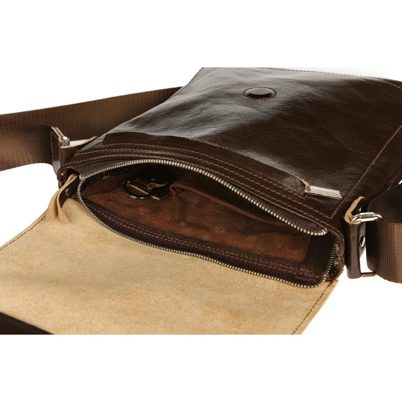 - Удобная мужская кожаная сумка Grande Pelle Мессенджер 754620 шоколад.