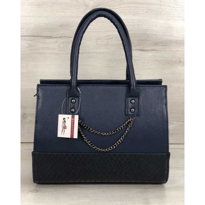 - Стильная каркасная женская сумка Welassie Селин с цепочкой синего цвета 32203.