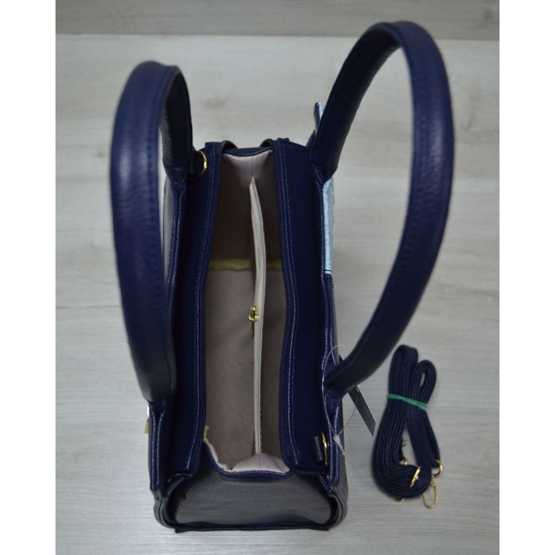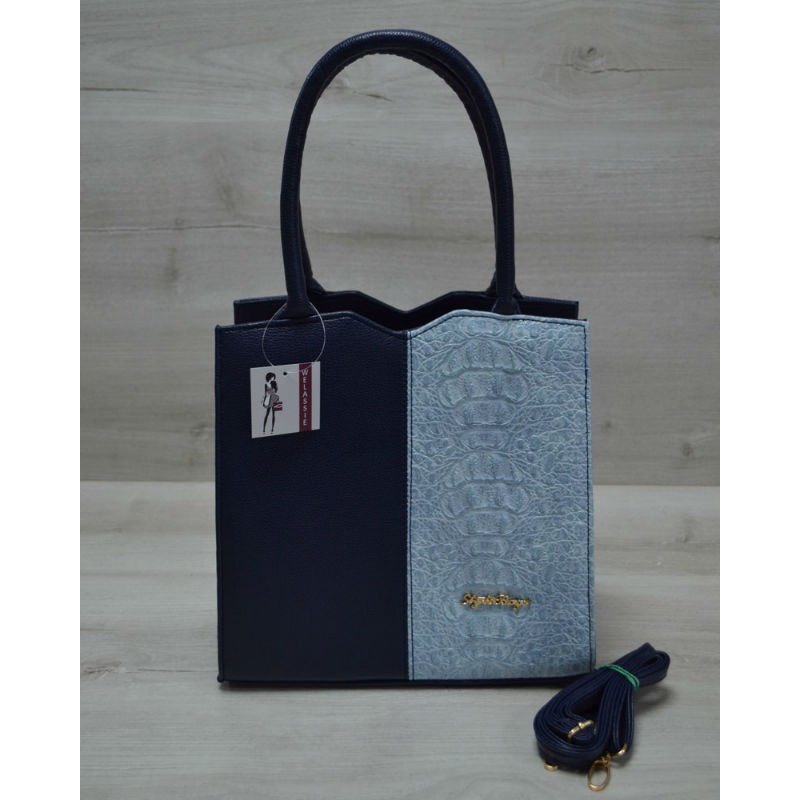 - Изысканная классическая женская сумка Welassie Треугольник синего цвета с голубым крокодилом 31707.