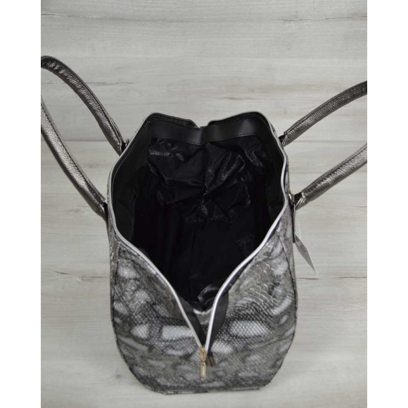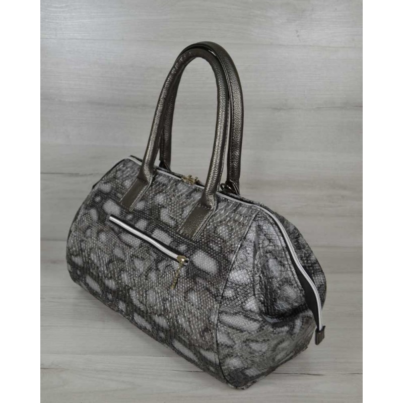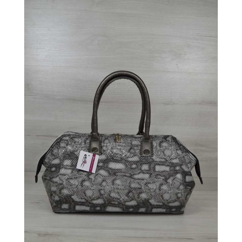 - Классическая женская сумка Welassie Оливия серая змея 31905 произведена из качественной экокожи.