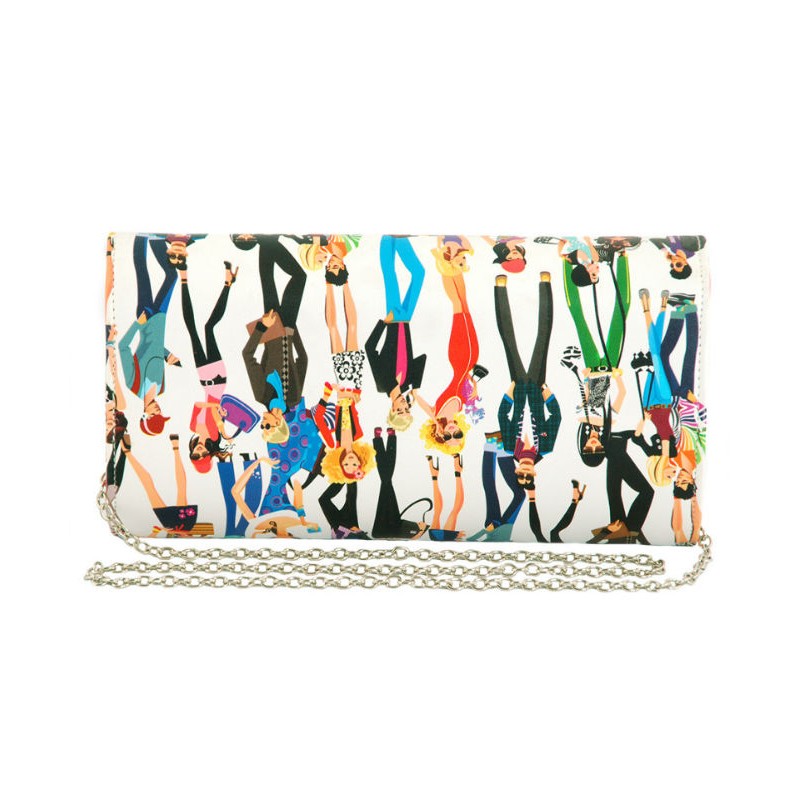 - Клатч 7212-61 белый с принтом нарисованных людей.