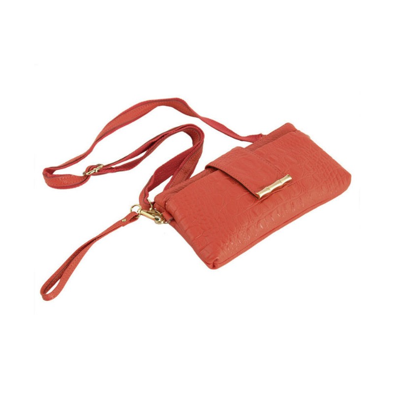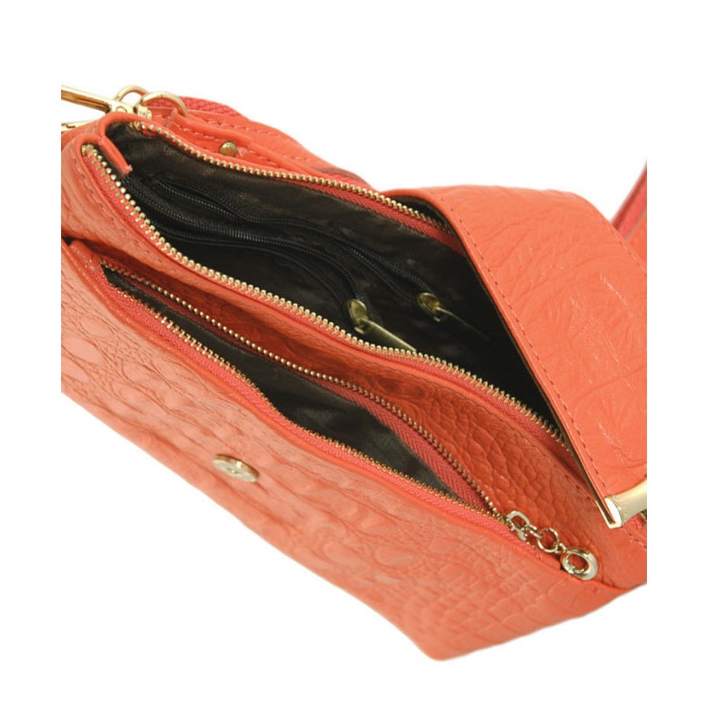- Клатч 7311-16 морковного цвета изготовлен из натуральной кожи с тиснением под крокодила.